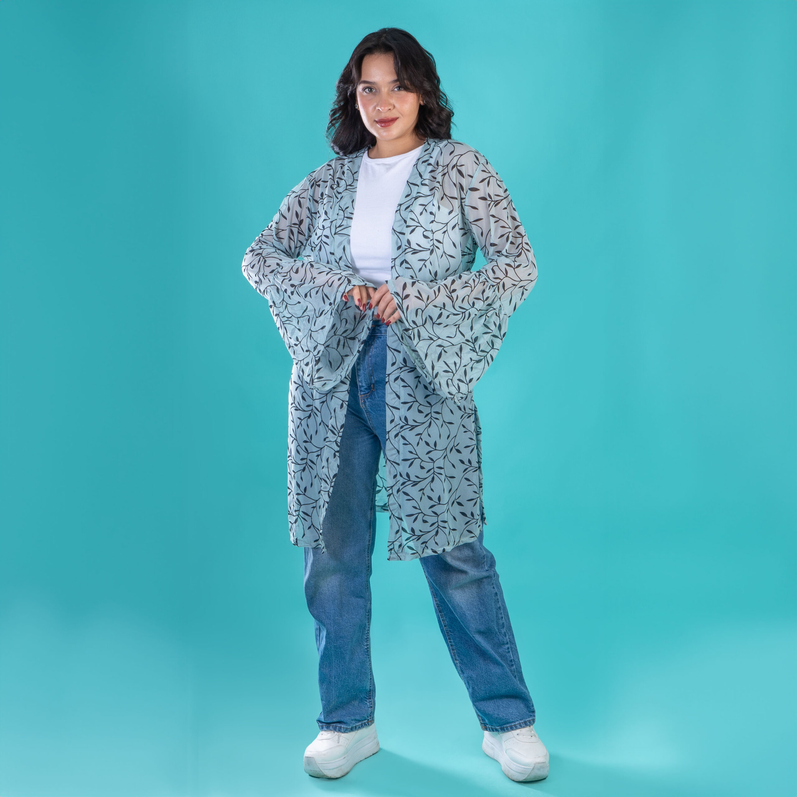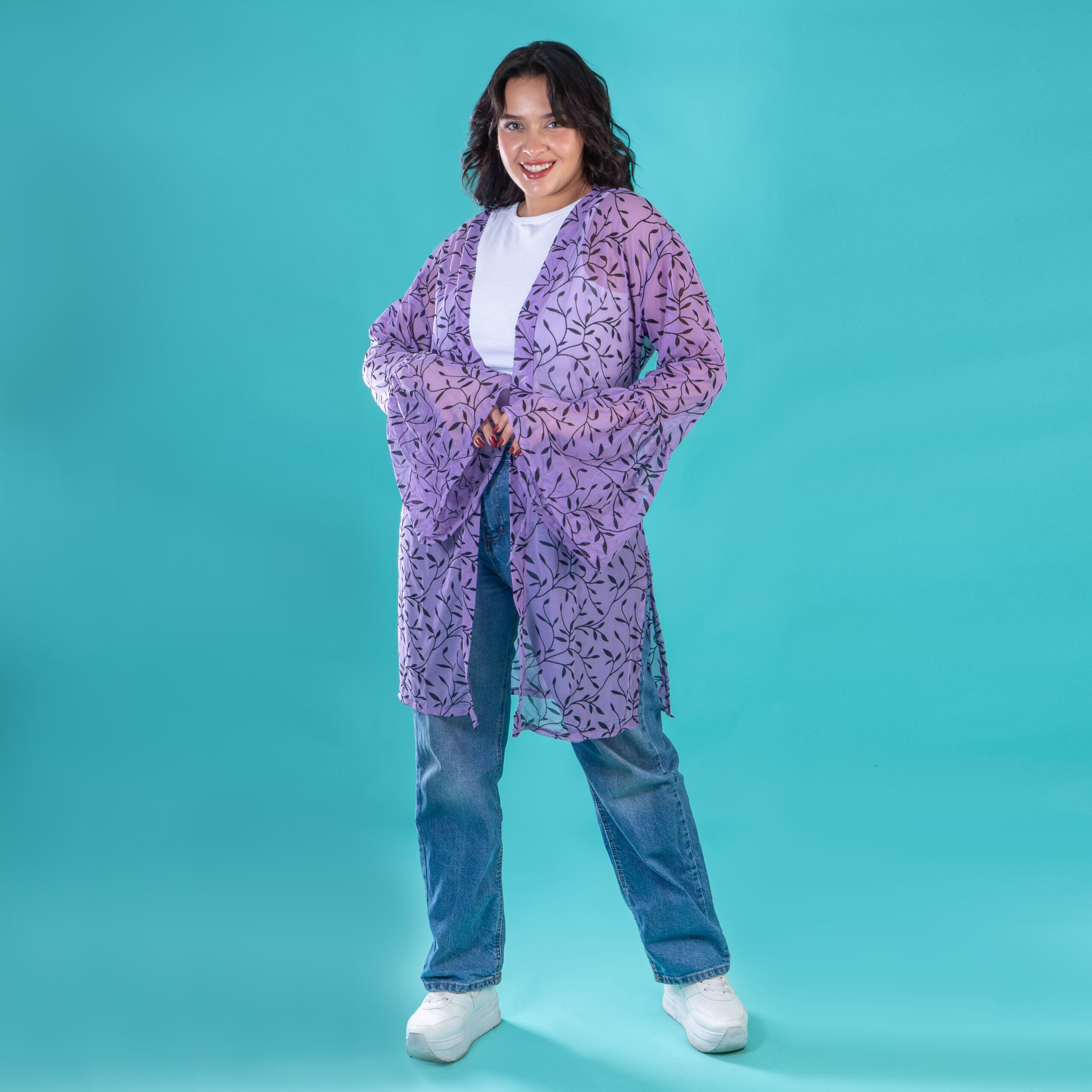 يحتوي العرض على 3 كارديجان شيفون مشجر اللون ( بيج – موف – مينت جرين).