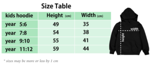 *sizes may vary by 1.5cm